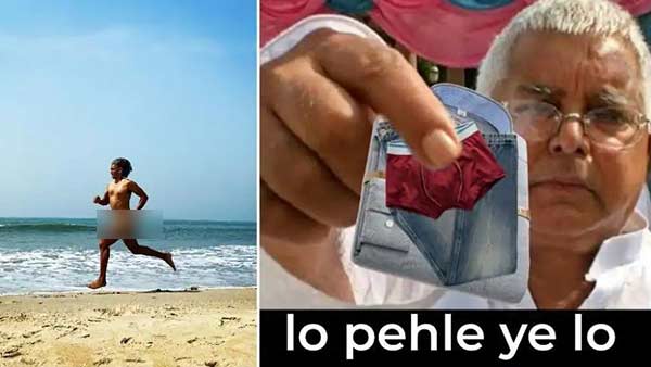 ஒருவர் லாலு பிரசாத் யாதவ் அவருக்கு உள்ளாடையும் சட்டையையும் அளிப்பதுபோல மீம்ஸ் வெளியிட்டுள்ளனர். என்னதான் பிறந்த நாள்னாலும் பிறந்த மேனியாவா போட்டோ போடுவீங்க? என்று சிலர் கேட்டுள்ளனர். சிலர் அவருடைய பிறந்த மேனி போட்டோவுக்கு உடை அணிந்து புகைப்படத்தை வெளியிட்டுள்ளனர்.