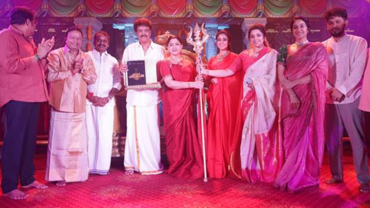குஷ்பூ கொடுத்த பரிசு: தொடர்ந்து பேசிய ஐசரி கணேஷ், இப்படத்தின் முதல் பாகம் வெற்றியடைந்ததற்கு பலமாக இருந்தது நயன்தாரா தான். முதல் பாகத்தின் படம் பிடிப்பு நடந்து கொண்டிருக்கும் போது, நயன்தாரா விரதம் இருந்தார். அதே போல இரண்டாம் பாகம் பூஜை போடும் ஒரு வாரத்திற்கு முன்பே தன்னுடைய குழந்தைகளுடன் விரதத்தை தொடங்கி விட்டார் என்று ஐசரி கணேஷ் அந்த நிகழ்ச்சியில் பேசினார். பட பூஜையில், மத்திய அமைச்சர் ஏ.எல்.முருகன், குஷ்பூ, மீனா, ரெஜினா காஸாண்ட்ரா, கேஎஸ் ரவிக்குமார், சுந்தர் சி ஆகியோர் கலந்து கொண்டனர். அப்போது குஷ்பூ, மீனாவும் இணைந்து திரிசூலத்தை நயன்தாரா கையில் கொடுத்தனர்.