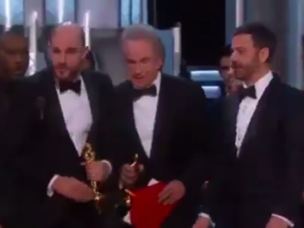 வாரனிடம் அளிக்கப்பட்ட கவரில் எம்மா ஸ்டோன், லா லா லேண்ட் என்று எழுதியிருந்தது. சிறந்த படத்திற்கான விருதுக்கு எப்படி எம்மாவின் பெயர் வரும் என்று வாரன் விழித்தார்.
