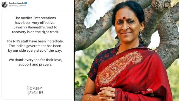 இந்நிலையில், பாம்பே ஜெயஸ்ரீயின் ட்விட்டர் பக்கத்தில் அவரின் உடல்நிலை குறித்த தகவல் வெளியாகி உள்ளது. அதில், பாம்பே ஜெயஸ்ரீக்கு அளிக்கப்பட்ட மருத்துவ சிகிச்சை மிகவும் பயனுள்ளதாக அமைந்துள்ளது. ஜெயஸ்ரீ உடல்நிலையில் முன்னேற்ற ஏற்பட்டு வருகிறது. என்.ஹெச்.எஸ் ஊழியர்கள் அவரை சிறப்பாக கவனித்து வருகிறார்கள்.இந்திய அரசும் எங்களுக்கு பக்கபலமாக இருந்து வருகிறது. அனைவரின் அன்பு, ஆதரவு மற்றும் பிரார்த்தனைக்கு நன்றி என குறிப்பிட்டுள்ளனர்.