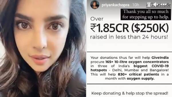 பிரியாங்கா சோப்ரா கிவ் இந்தியா திட்டத்தின் மூலம்... 1.85 கோடி நிதி திரட்டியுள்ளார் !