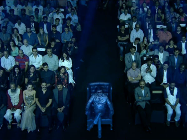 மேடையில் நிஜ ரஜினி வந்து நிற்க, அரங்கின் நடு நாயகமாக பெரிய நாற்காலியில் கால் மேல் கால் போட்டபடி சிட்டி ரஜினி செம ஸ்டைலாக அமர்ந்திருந்தார்.