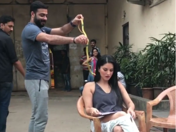 செட்டில் அமர்ந்து ஸ்க்ரிப்ட் படித்துக் கொண்டிருந்த சன்னி லியோன் மீது ஒருவர் பாம்பை வீச அவர் பதறியடித்து அலறிக் கொண்டு ஓடுகிறார். இந்த வீடியோவை சன்னி இன்ஸ்டாகிராமில் வெளியிட்டுள்ளார்.