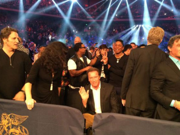 அந்த போட்டியை காண ஹாலிவுட் ஜாம்பவான்களான அர்னால்ட் ஸ்வார்ஸ்நெக்கர் மற்றும் சில்வர்ஸ்டர் ஸ்டலோனும் வந்திருந்தனர்.