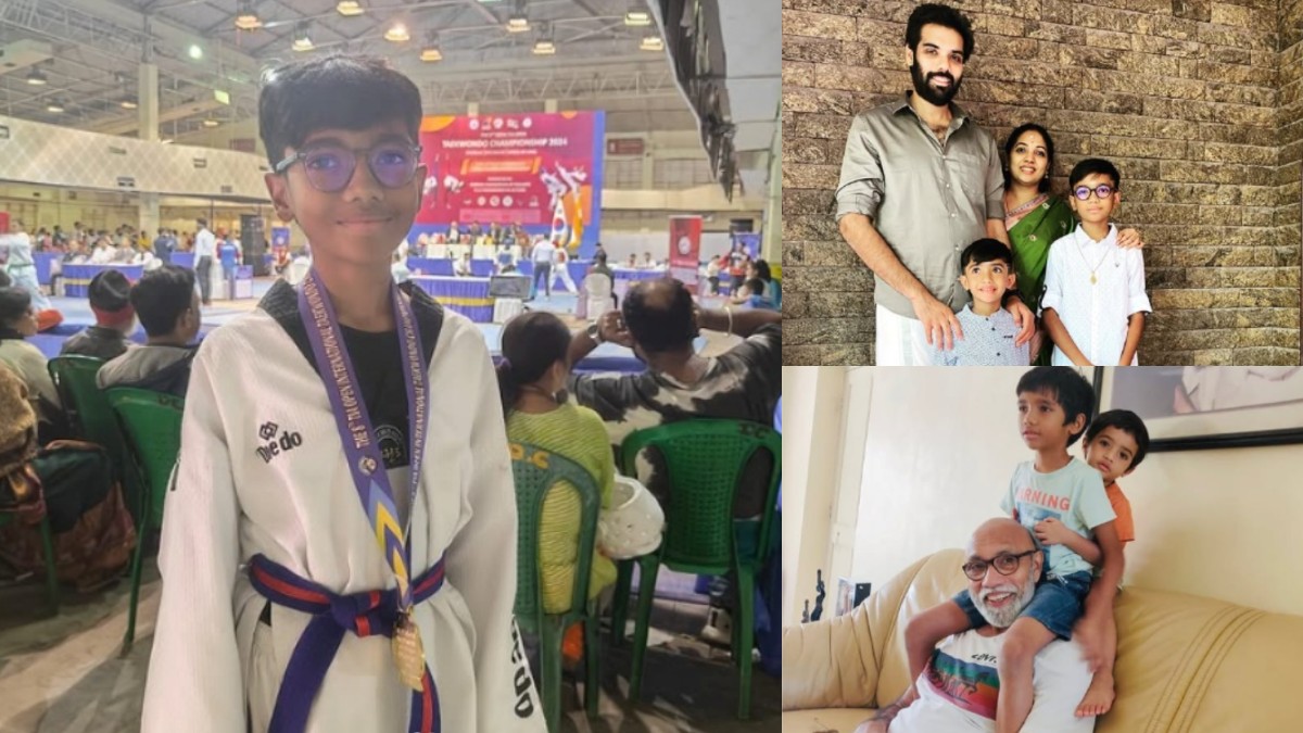 2 மெடல்கள்: ஒரு தங்கப்பதக்கம் மற்றும் ஒரு வெண்கலப்பதக்கம் என சத்யராஜின் பேரன் 2 மெடல்களை வாங்கி அப்பா, தாத்தா என ஒட்டுமொத்த குடும்பத்தினரையும் சந்தோஷத்தில் ஆழ்த்தியுள்ளார். அப்பா சத்யராஜ் போலவே தமிழ் சினிமாவில் ஹீரோவாக மாறிய சிபிராஜ் கடந்த 2008ம் ஆண்டு ரேவதி எனும் பெண்ணை திருமணம் செய்துக் கொண்டார். இந்த தம்பதியினருக்கு 2 மகன்கள் உள்ளனர். பள்ளியில் படிப்பில் அதிக ஆர்வம் கொண்டு விளங்கும் மூத்த மகன் தீரன் தற்போது டேக்வாண்டோ எனப்படும் தற்காப்பு பயிற்சியிலும் தூள் கிளப்பியுள்ளார்.
