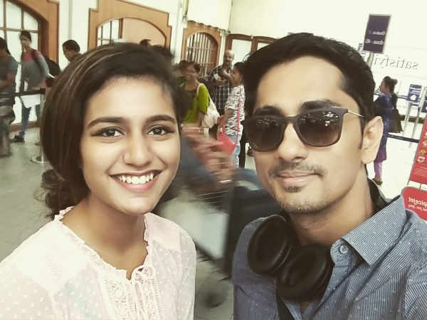 இந்நிலையில, பிரியா பிரகாஷ் வாரியருடன் இணைந்து எடுத்த செல்ஃபி ஒன்றை தனது ட்விட்டர் பக்கத்தில் வெளியிட்டுள்ளார் நடிகர் சித்தார்த். தனது புதிய படத்தில் அவரை கதாநாயகியாக நடிக்க வைப்பதற்கான பேச்சுவார்த்தைக்காக பிரியா வாரியரை சந்தித்திருக்கலாம் என்று கூறப்படுகிறது.