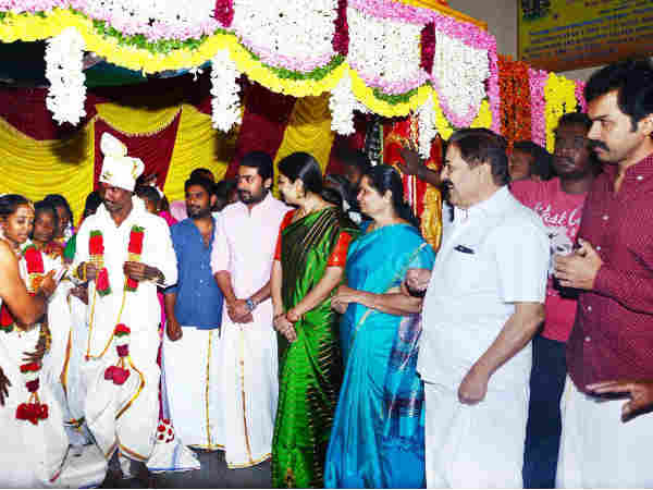 இந்தத் திருமணத்தை நடத்திவைப்பதோடு திருமண விழாவில் சிவகுமார், சூர்யா, கார்த்தி ஆகியோர் தங்கள் குடும்பத்தினர் சகிதமாக கலந்துகொண்டு மணமக்களை வாழ்த்தியுள்ளனர். இந்தச் செய்தி சமூக வலைதளங்களில் வெளியானதும் ரசிகர்கள் அதிகமாகப் பகிர்ந்து வருகின்றனர்.