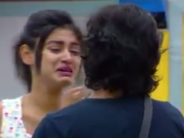 பிக் பாஸ் வீட்டில் உள்ள அனைவரும் தன்னை ஒதுக்குவதை பார்த்து ஓவியா அழுகிறார். உடனே சினேகன் பாய்ந்து வந்து ஓவியாவை கட்டிப்பிடிக்கிறார்.