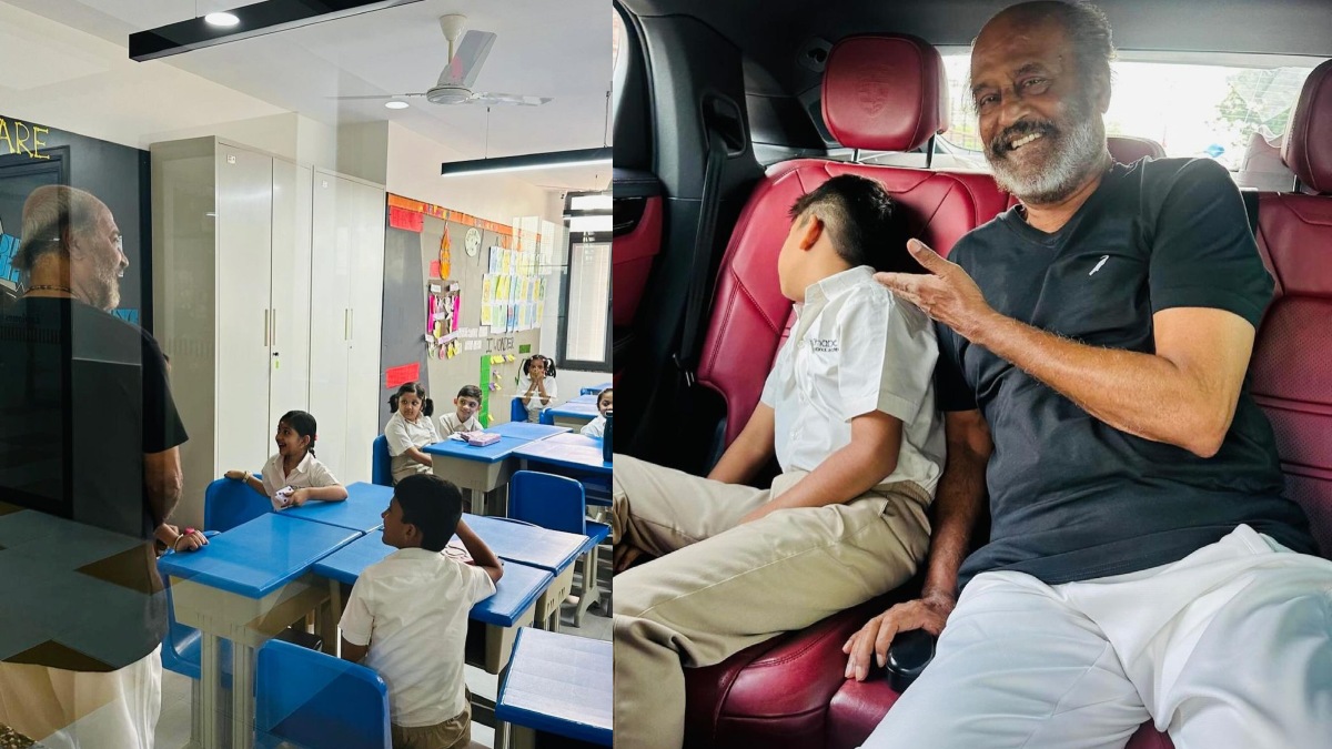 பேரனை பள்ளியில் விடப்போன சூப்பர் ஸ்டார்! ரசிகர்கள் முதல் பிரபலங்கள் வரை கமெண்ட்டில் ரகளை!