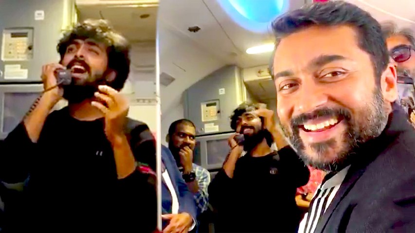 இதை முன் இருக்கையில் அமர்ந்த படி இருக்கும் சூர்யா மிக ஆர்வத்துடனும் மிக புன்னகையுடனும் ரசித்த படி அப்படியே அமர்ந்திருக்கும் குழந்தைகளை திரும்பி பார்க்கிறார். சிலருக்கு சில விசயங்களில் மன நிறைவு கிடைக்கும் அப்படி குழந்தைகளின் ஆனந்ததை பார்த்து மனம் மகிழ்ந்த சூர்யாவின் புன்னகையை பதிவு செய்த அந்த காணொலியை அதிகபடியான ரசிகர்கள் பகிர்ந்து வருகின்றனர்