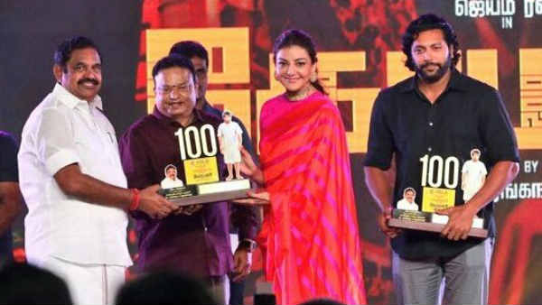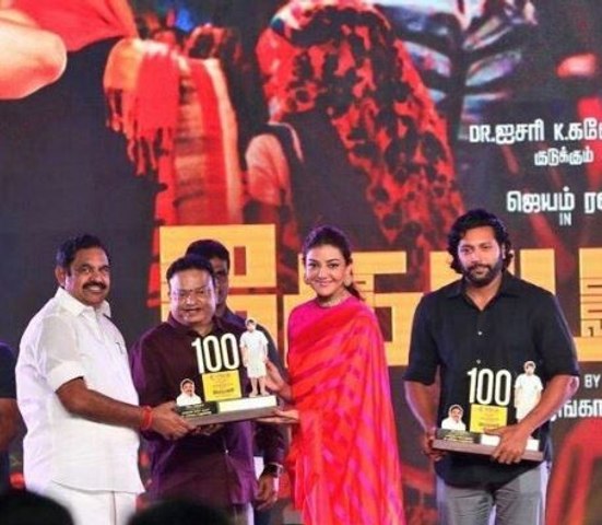 இப்போதெல்லாம் படம் வெளியான 3வது நாளே வெற்றி கொண்டாட்டத்தை படக்குழு கடமைக்காக நடத்தி விடுகின்றனர். இந்நிலையில், ஜெயம் ரவியின் கோமாளி 100 நாட்கள் திரையில் ஓடியிருப்பது சாதனையான விஷயம் தான். 100வது நாளை முன்னிட்டு, ஜெயம் ரவி, காஜல் அகர்வால் உள்ளிட்ட படக்குழுவினர் வேல்ஸ் வெற்றி விழாவில் கலந்து கொண்டனர்.
