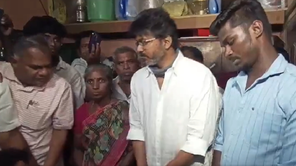 சிவகங்கை: சிவகங்கை மாவட்டம் திருப்புவனத்தில் விசாரணைக்காக காவல் துறையால் அழைத்துச் செல்லப்பட்ட அஜித் குமார் என்ற இளைஞர் பரிதாபமாக உயிரிழந்தார். இவரது மரணத்தில் சந்தேகம் இருப்பதாக அஜித்குமார் உறவினர்கள் நடத்திய போராட்டம் மற்றும் சட்டப் போராட்டத்தின் விளைவாக பல திடுக்கிடும் உண்மைகளும் திருப்பங்களும் தினமும் நடைபெற்று வருகிறது. இந்நிலையில் உயிரிழந்த அஜித் குமார் வீட்டிற்கு நேரில் சென்று அவரது குடும்பத்தினரை சந்தித்து ஆறுதல் கூறியுள்ளார் நடிகரும் தவெக தலைவருமான விஜய். இது தொடர்பான வீடியோக்கள் மற்றும் புகைப்படங்கள் இணையத்தில் வேகமாக பரவி வருகிறது.
