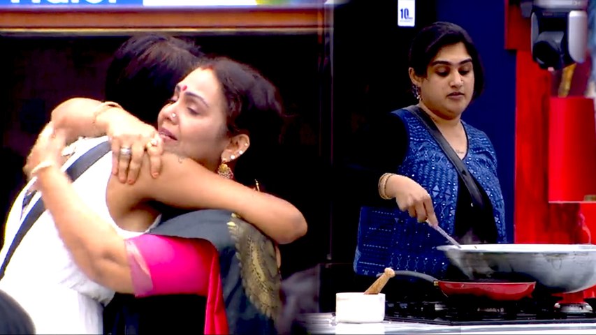 அப்போது வனிதா கேங்க் முனக ஆரம்பித்துவிட்டது. பின்னர் கிச்சனில் நின்ற வனிதா, மீராவை எப்படி தேவதை என கூறலாம் என்று ஃபாத்திமாவிடம் மல்லுக்கட்டினார்.