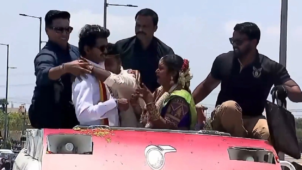 திருவள்ளூர்: நடிகரும் தமிழக வெற்றிக் கழகத்தின் தலைவருமான நடிகர் விஜய் தனது கட்சி வேட்பாளர்களை ஆதரித்து ஏப்ரல் 20ஆம் தேதி திருவள்ளூர் மாவட்டத்தில் பிரசாரம் செய்து வருகிறார். இப்படி இருக்கையில் திருவள்ளூரில் புதுமண தம்பதிகளை தனது பிரசார வாகனத்திற்கு வரவழைத்து வாழ்த்து தெரிவித்து அனுப்பினார். இது தொடர்பான வீடியோ மற்றும் புகைப்படங்கள் இணையத்தில் வேகமாக பரவி வருகிறது.
