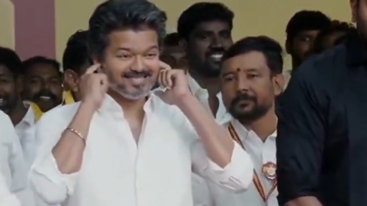 செயல் வீரர்கள் கூட்டம்: இந்நிலையில் தவெக கட்சியின் செயல் வீரர்கள் கூட்டம் இன்று மாமல்லபுரத்தில் நடைபெற்றது. அதில் விஜய் உள்ளிட்ட கட்சி நிர்வாகிகள் கலந்துகொண்டார்கள். நிகழ்ச்சி தொடங்குவதற்கு முன்னதாக அங்கு கூடியிருந்த தொண்டர்கள் விசிலை ஊதி சத்தம் எழுப்பினார்கள். அதுமட்டுமின்றி TVK, TVK என்று சில நிமிடங்கள் தொடர்ந்து குரல் கொடுத்துக்கொண்டே இருந்தார்கள். இதனை பார்த்து விஜய் க்யூட்டாக தனது இரண்டு கைகளையும் காதில் வைத்தபடி சில நொடிகள் நின்றார். அந்த வீடியோதான் இப்போது ட்ரெண்டாகியுள்ளது.