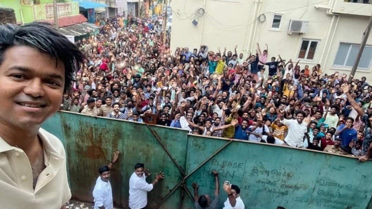 இந்நிலையில், GOAT படத்தின் ஷூட்டிங் தற்போது சென்னையில் நடைபெற்று வருகிறது. இதில், விஜய் நடிக்கும் காட்சிகளை படமாக்கி வருகிறார் வெங்கட் பிரபு. அப்போது விஜய்யை பார்க்க ஷூட்டிங் ஸ்பாட்டில் ரசிகர்கள் குவிந்தனர். இதனையடுத்து ரசிகர்களை படப்பிடிப்புத் தளத்தின் உள்ளே இருந்தே பார்த்து கையசைத்தார் விஜய். ரசிகர்களை விஜய் சந்தித்த வீடியோ வைரலாகி வந்தது.