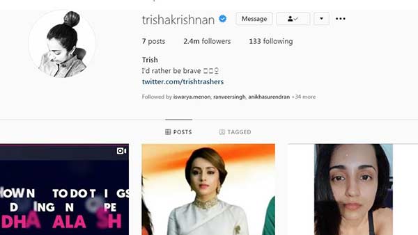 2.4 மில்லியன் இன்ஸ்டாகிராம் ரசிகர்களை கொண்டுள்ள நடிகை திரிஷாவின் இன்ஸ்டாகிராம் பக்கத்தில் இருந்து ஏகப்பட்ட பதிவுகள், லாக்டவுன் நேரத்தில் அவர் நடனமாடிய வீடியோக்கள் என அனைத்துமே நீக்கப்பட்டுள்ளன. தற்போது வெறும் 7 பதிவுகள் மட்டுமே இருப்பது குறிப்பிடத்தக்கது. இந்த திடீர் டெலிட்டுக்கு என்ன பின்னணி என்பது தெரியவில்லை.