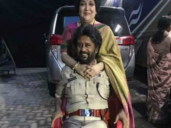 தர்பார் ஷுட்டிங் ஸ்பாட்டில் எடுக்கப்பட்டுள்ள அந்த போட்டோவில் போலீஸ் யூனிஃபார்மில் நாற்காலியில் அமர்ந்திருக்கிறார் ரஜினி. அவருக்கு பின்னால் நின்றுக்கொண்டு அவரின் மார்பில் கைகளை கோர்த்த அணைத்தப்படி உள்ளார் அவரது மனைவியான லதா.