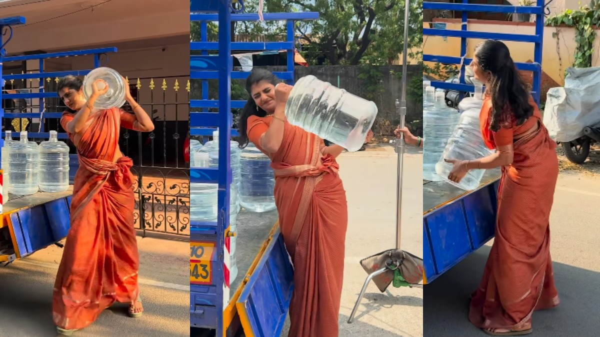 குட்டியானை வண்டியை ஓட்டிக்கிட்டு.. வாட்டர் கேன் போடுறாரே பிக் பாஸ் கேப்ரில்லா.. அதுவும் சேலையணிந்து!