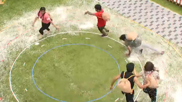 அதன்படி போட்டியாளர்களின் முதுகில் தர்மகோல் நிரப்பப்பட்ட பை மாட்டப்பட்டுள்ளது. ஒரு வட்டத்துக்குள் போட்டியாளர்கள் ஓடும் போது அவர்கள் மாட்டியிருக்கும் பைகளை கிழித்து பையை காலியாக்க வேண்டும்.