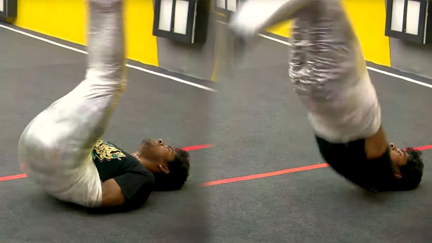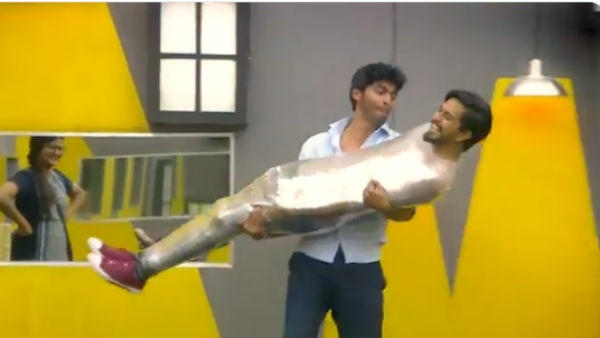 பாக்ஸ்க்குள் சென்றது முதல் எழுந்து நிற்க பெரும் முயற்சி செய்தார் சாண்டி. ஆனால் முடியவில்லை. இதனை தொடர்ந்து சாண்டி மீது சாய்ந்தபடி முகென் ஜம்மென்று எழுந்து நின்றார்.