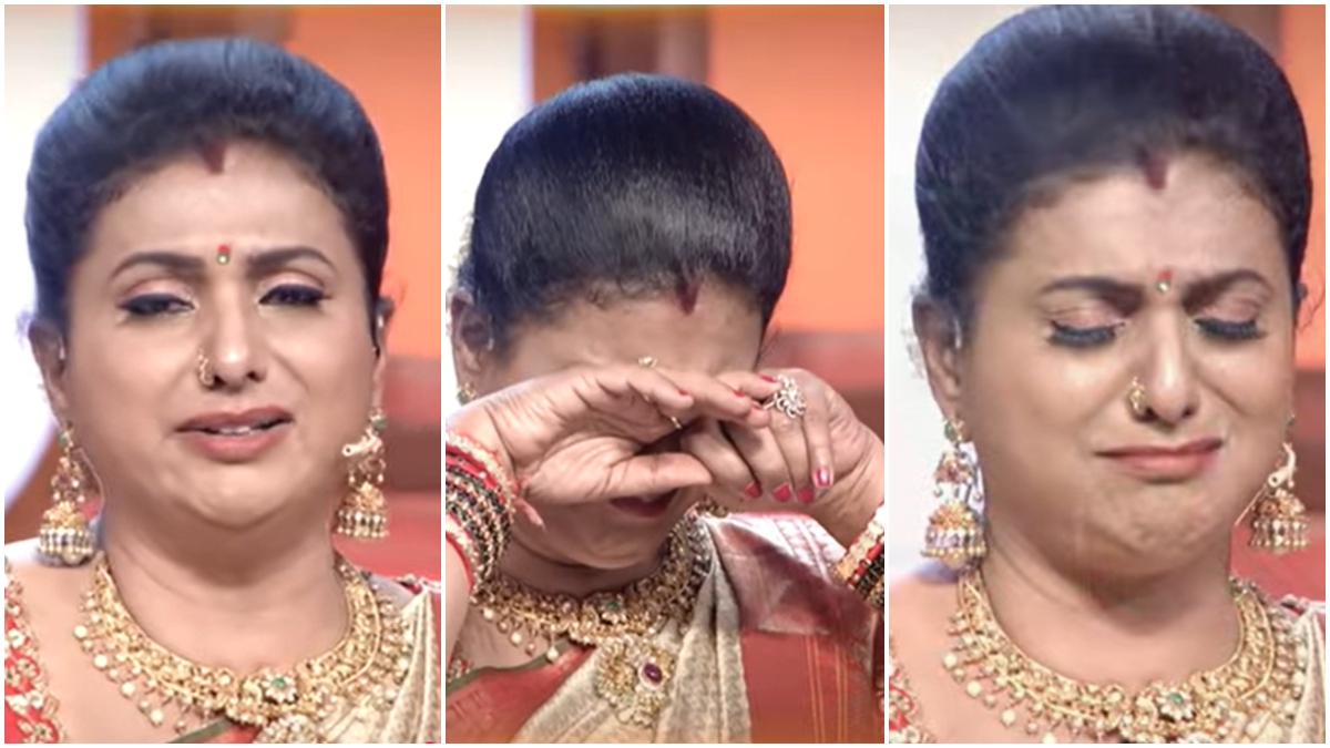 தேம்பி தேம்பி அழுத ரோஜா: இதைக் கேட்டு கொண்டு இருந்த புகழ், மிகவும் உணர்ச்சிவசப்பட்டு, "என் கல்யாணத்திலும் என் அப்பா இல்லை" என்று சொல்லி கண்கலங்கினார். உடனே அங்கிருந்தவர்கள் புகழை கட்டி அணைத்து சமாதானம் செய்துகொண்டு இருந்தனர். இந்த உணர்ச்சிமிகு தருணத்தை பார்த்து மனம் உடைந்த நடிகை ரோஜா, டேய் புகழ் அழாதடா... நீ அழுவதைப்பார்த்தா... எனக்கும் அழுகை வருது என சொல்லிக்கொண்டே இருந்த ரோஜா, திடீரென தன் அப்பாவை நினைத்து அழத்தொடங்கினார். என் கல்யாணத்திலும் என் அப்பா இல்லை... அவரு எனக்கு உயிரு... அப்பாவை பற்றி யாரு பேசினாலும் எனக்கு கஷ்டமாக இருக்கும்.... யாரும் அப்பா பத்தி பேசாதீங்க என்று கூறி, குழந்தைபோல் தேம்பித் தேம்பி அழுதார். அவரின் இந்த உருக்கமான உணர்ச்சி வெளிப்பாடு அங்கு இருந்த அனைவரையும் அமைதியாக்கியது. எப்போதும் கலகலப்பாக இருக்கும் மேடை, அந்த நொடியில் முழுவதும் உணர்ச்சியில் மூழ்கியது. இதைப்பார்த்த ரசிகர்கள் சிரிக்க வைத்த இந்த நிகழ்ச்சி இப்படி கண்கலங்க வைத்துவிட்டதே என்று கருத்துக்களை பகிர்ந்து வருகின்றனர்.