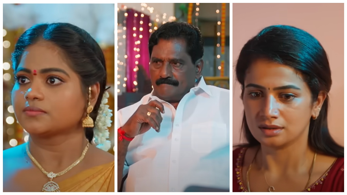 எதிர்நீச்சல் தொடர்கிறது: உடனே ஜனனி, நந்தினிக்கு ஃபோன் செய்ய, அங்கு மாறு வேஷத்தில் இருக்கும் நந்தினியை சுற்றி ஆட்கள் இருப்பதால், போனை எடுக்க முடியாமல் போகிறது. மீண்டும் ஜனனி ஃபோன் செய்ய, நந்தினி, மாப்பிள்ளையின் அறைக்கு ஓடி சென்று, போனை எடுத்து, ஜனனி இனிமேல் எனக்கு போன் பண்ணாதே, எதுவாக இருந்தாலும், சக்தியிடம் சொல், என்னை சுற்றி ஆட்கள் சுற்றிக்கொண்டே இருக்கிறார்கள் என சொல்லிவிட்டு எதையும் கேட்காமல் போனை கட் செய்துவிடுகிறாள். நந்தினியை நோட்டமிட்டு வந்த, கதிர், வெளியே வந்த நந்தினியிடம், அது என்ன ரகசியமா போன் பேசிட்டு வர என்று அவளிடம் வம்பு செய்ய, சக்தி வந்து தடுத்து அங்கிருந்து அழைத்து செல்கிறான்.