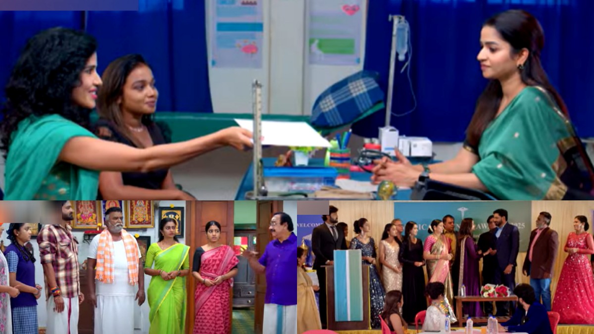 விருது வழக்கும் விழாவில், சௌந்தரபாண்டி வித்தியாசமான கெட்டப்பில் இருப்பதை பார்த்த பரணி, என்ன அப்பா இது என்று கேட்டு ஆச்சரியமடைகிறாள். உடனே, சௌந்தரபாண்டி ஏன் நான் இப்படியெல்லாம் டிரஸ் பண்ண மாட்டேனா என்று பதில் கூறுகிறார். ஸ்ருதி சண்முகத்தை கூட்டிட்டு வரலையா என்று கேட்க இல்ல அவங்களுக்கு எல்லாம் வேலை இருக்கு, அதனால் கூட்டிட்டு வரல என்று சொல்கிறாள். இதனை தொடர்ந்து சௌந்தரபாண்டி ஸ்ருதியை தனியாக அழைத்து சென்று, அவமானப்பட கூடாதுனு தான் இப்படி விட்டுட்டு வந்திருக்கா என்று சொல்கிறார்.