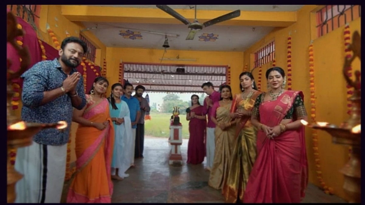 இன்றைய எபிசோடில், மயில்வாகனம், மாப்பிள்ளை மகேஷ் பற்றி பல விஷயத்தை நான் சொல்ல போகிறேன் அதைப்பற்றி கேட்டால் நீங்கள் இந்த கல்யாணத்யே நிறுத்திவிடுவீர்கள் என்று சொல்ல, சாமுண்டீஸ்வரி முதலில் என்ன பிரச்சனை என்று சொல்லுங்கள் என்கிறாள். இதையடுத்து, மகேஷ் குடிபோதையில் உளறிய வீடியோவை காட்ட, அந்த வீடியோவில்.ஆடியோ இல்லாமல் இருக்க மயில்வாகனம் என்ன செய்து என்று தெரியாமல் முழிக்கிறார். உடனே, சாமுண்டீஸ்வரி எதுக்கு இப்படி எல்லாம் செய்றீங்க என மயில்வாகனத்தை திட்டுகிறாள்.