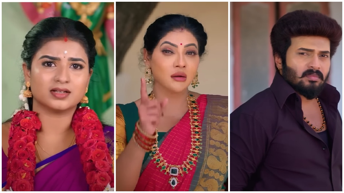 ரேவதியை சந்தித்த அபிராமி, சித்தரை பார்த்ததாகவும் அவர் நீங்க இரண்டு பேரும் 5 வருடம் பிரிந்து இருக்க போவதாகவும் அதை தடுக்க பரிகாரம் செய்ய வேண்டும் என்றும் சொன்னதாக சொல்கிறாள். இதைக்கேட்டு, ரேவதி, சாமியார் அப்படித்தான் சொல்லுவார்கள், பரிகாரம் எதுவும் செய்ய வேண்டாம் என்று சொல்கிறாள். அப்போது, அபிராமி, மாலை வாங்கி வந்து கொடுத்து, பரிகாரத்தை செய்ய சொல்கிறாள். இதையடுத்து, அபிராமி காவடி எடுக்கப்போவதாக சொல்ல, ரேவதியும், கார்த்திக்கும் கஷ்டப்படுகின்றனர். பிறகு ரேவதி கார்த்தியிடம் நீங்க தான் உங்க அம்மா கிட்ட சொன்னீங்களா என்று சத்தம் போடுகிறாள்.