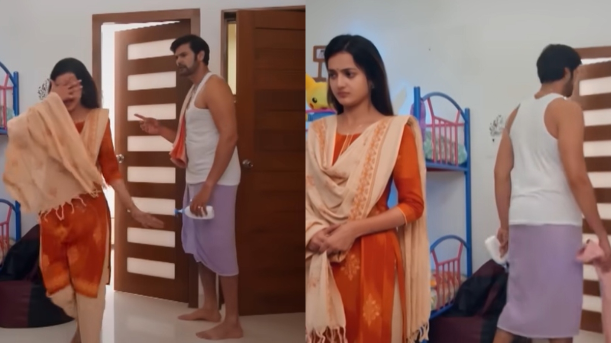 டவலுடன் வரும் எழில்: அடுத்ததாக சுடர் குளிக்க போக குழாயில் தண்ணீர் வராமல் இருக்க அவள் வெளியே வர கனகவல்லி என்னாச்சி என்று கேட்டு மனோகரி ரூமில் குளிக்க சொல்லி அனுப்பி வைக்கிறாள். ஆனால் மனோகரி என்னுடைய ரூமில் குளிக்க கூடாது என துரத்தி விடுகிறாள். இதனால் சுடர் குழந்தைகளின் ரூமுக்கு வந்து குளிக்கிறாள். இதே நேரத்தில் எழிலும் ரூமிலும் தண்ணீர் வராத நிலையில் அவனும் குழந்தைகள் ரூமுக்கு குளிக்க வருகிறான்.